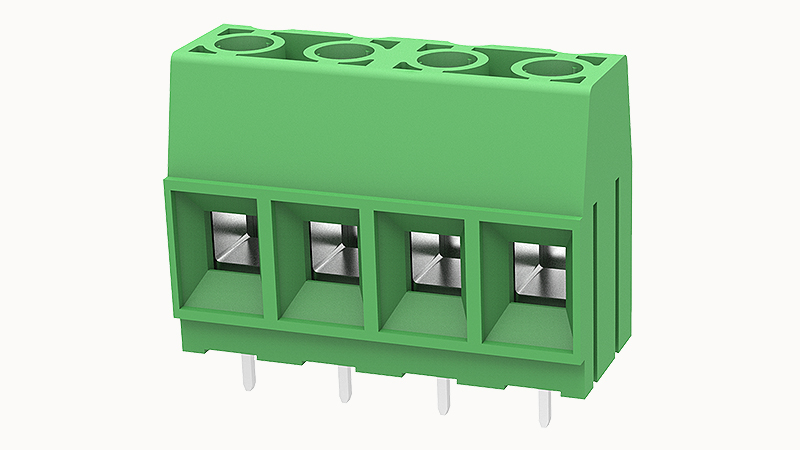 Клемма для печатной платы c шагом 10,16 мм, 4 полюса, цвет - зелёный, номинальное напряжение - 1000 B, номинальный ток - 65 А, тип подключения - винтовой зажим, монтаж - пайка волной припоя, угол между проводником и печатной платой - 0°, сечение проводника от 2,5 до 16 мм², длина зачистки изоляции - 10 мм, материал контакта - медь, покрытие контакта - луженый, материал корпуса - полиамид 6.6, класс воспламеняемости - V0, температура окружающей среды при эксплуатации от -40°C до +105°C