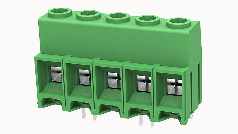 Клемма для печатной платы c шагом 10,16 мм, 5 полюсов, цвет - зелёный, номинальное напряжение - 1000 B, номинальный ток - 76 А, тип подключения - винтовой зажим, монтаж - пайка волной припоя, угол между проводником и печатной платой - 0°, сечение проводника от 0,5 до 16 мм², длина зачистки изоляции - 13 мм, материал контакта - медь, покрытие контакта - луженый, материал корпуса - полиамид 6.6, класс воспламеняемости - V0, температура окружающей среды при эксплуатации от -40°C до +105°C