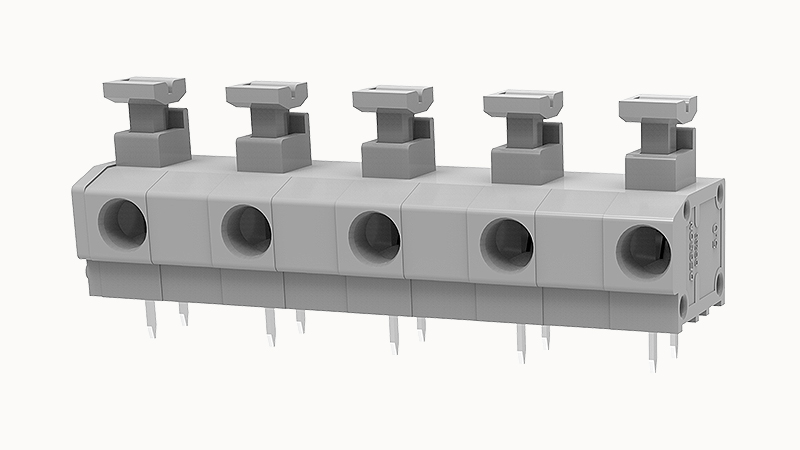 Клемма для печатной платы c шагом 10 мм, 5 полюсов, цвет - серый, номинальное напряжение - 1000 B, номинальный ток - 17,5 А, тип подключения - зажим Push-in, монтаж - пайка волной припоя, угол между проводником и печатной платой - 0°, сечение проводника от 0,2 до 1,5 мм², длина зачистки изоляции - 10 мм, материал контакта - медный сплав, покрытие контакта - луженый, материал корпуса - полиамид 6.6, класс воспламеняемости - V0, температура окружающей среды при эксплуатации от -40°C до +105°C