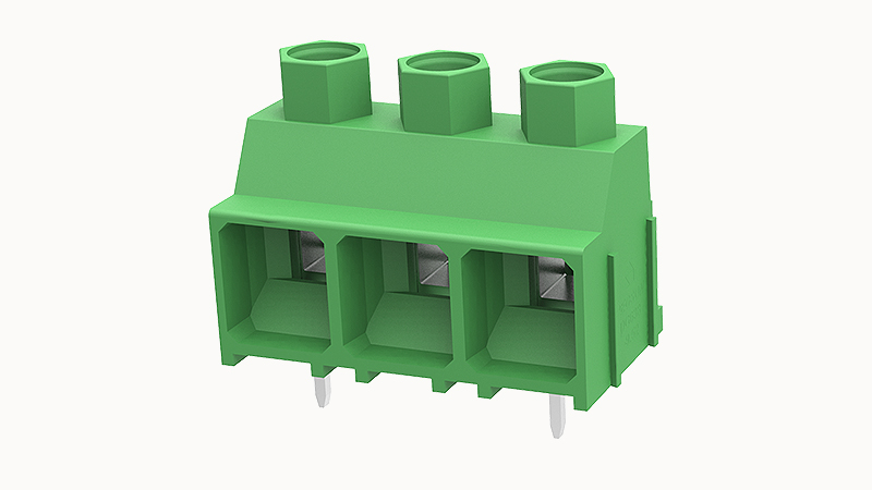 Клемма для печатной платы c шагом 9,52 мм, 3 полюса, цвет - зелёный, номинальное напряжение - 1000 B, номинальный ток - 32 А, тип подключения - винтовой зажим, монтаж - пайка волной припоя, угол между проводником и печатной платой - 0°, сечение проводника от 0,2 до 4,0 мм², длина зачистки изоляции - 8 мм, материал контакта - медь, покрытие контакта - луженый, материал корпуса - полиамид 6.6, класс воспламеняемости - V0, температура окружающей среды при эксплуатации от -40°C до +105°C